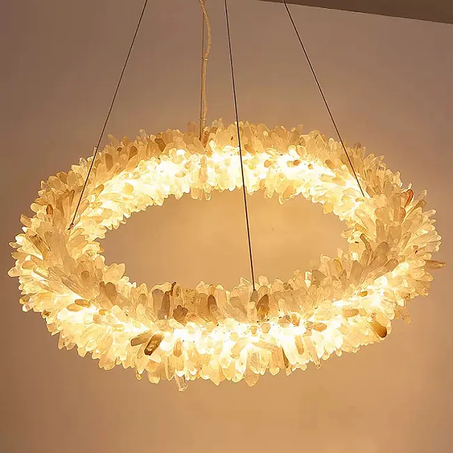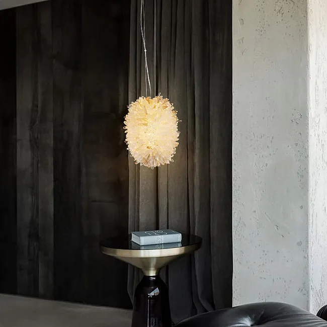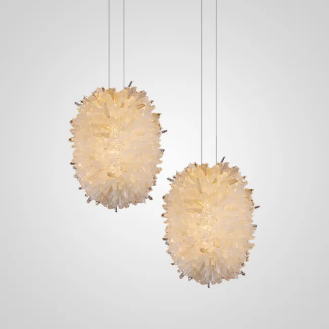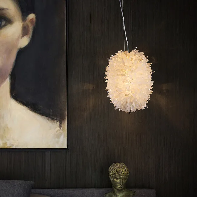 Серия подвесных светодиодных светильников с шарообразными плафонами из натуральных хрустальных камней