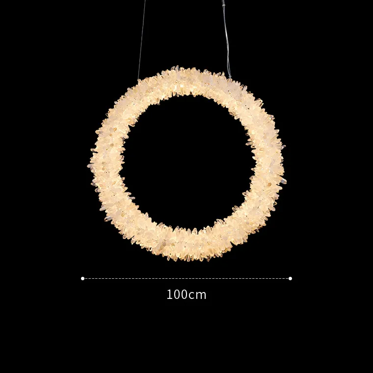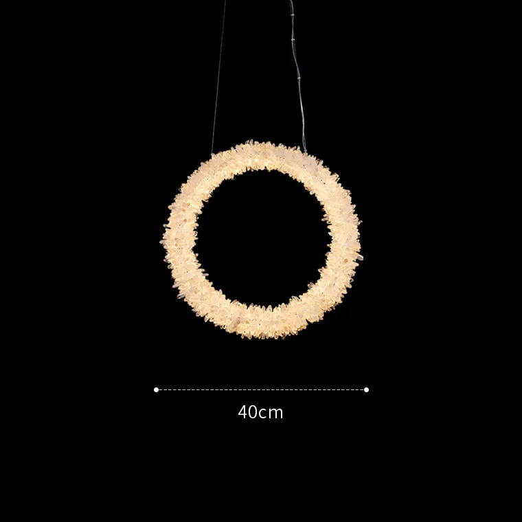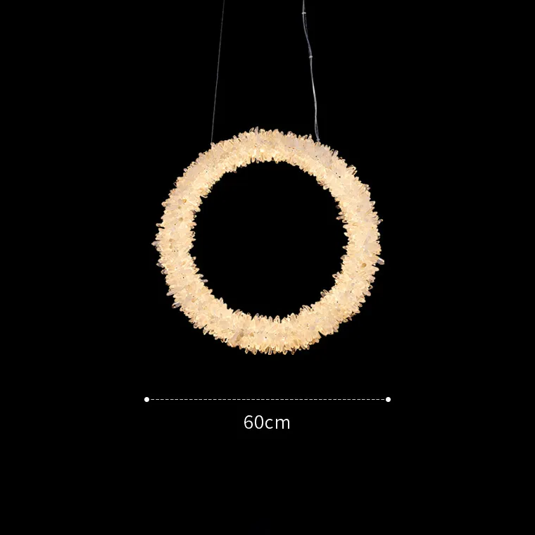Серия подвесных светодиодных светильников на кольцевом каркасе с абажуром из натуральных кристаллов хрусталя