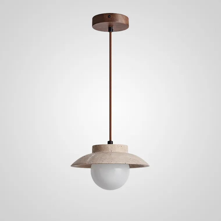 Подвесной светильник со стеклянным шарообразным плафоном и каменным абажуром в форме чаши