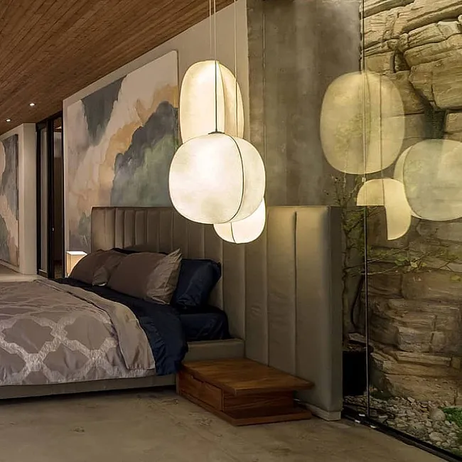 - в гостиной в центре или в функциональных зонах: над диваном, над столом или барной стойкой;