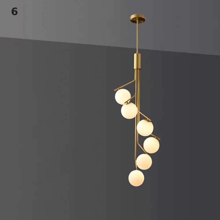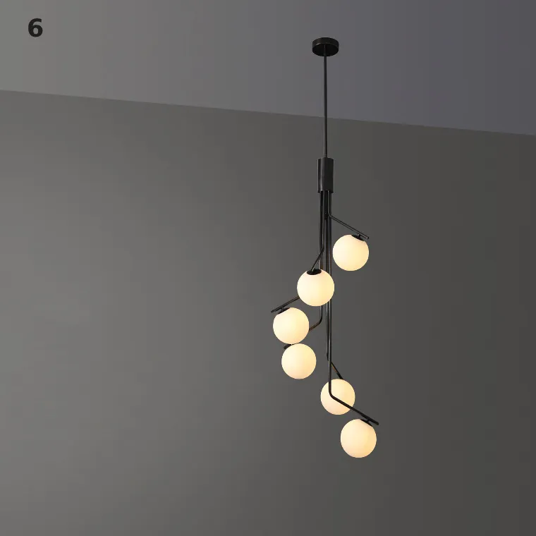 Каскадный светильник на общей потолочной стойке с шарообразными плафонами молочного цвета
