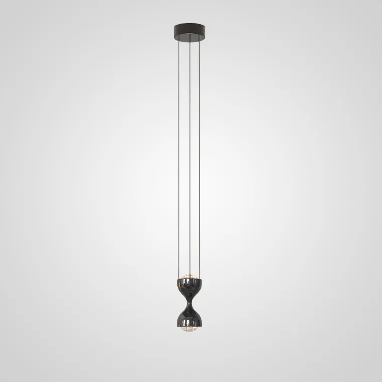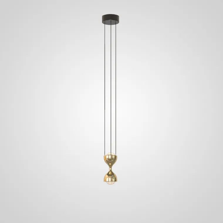 Подвесной светодиодный светильник с двумя линзами в металлическом корпусе в форме песочных часов