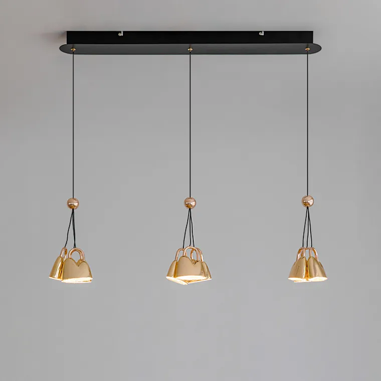 Готовая комбинация подвесных светодиодных светильников с тройным рассеивателем в цвете глянцевого золота