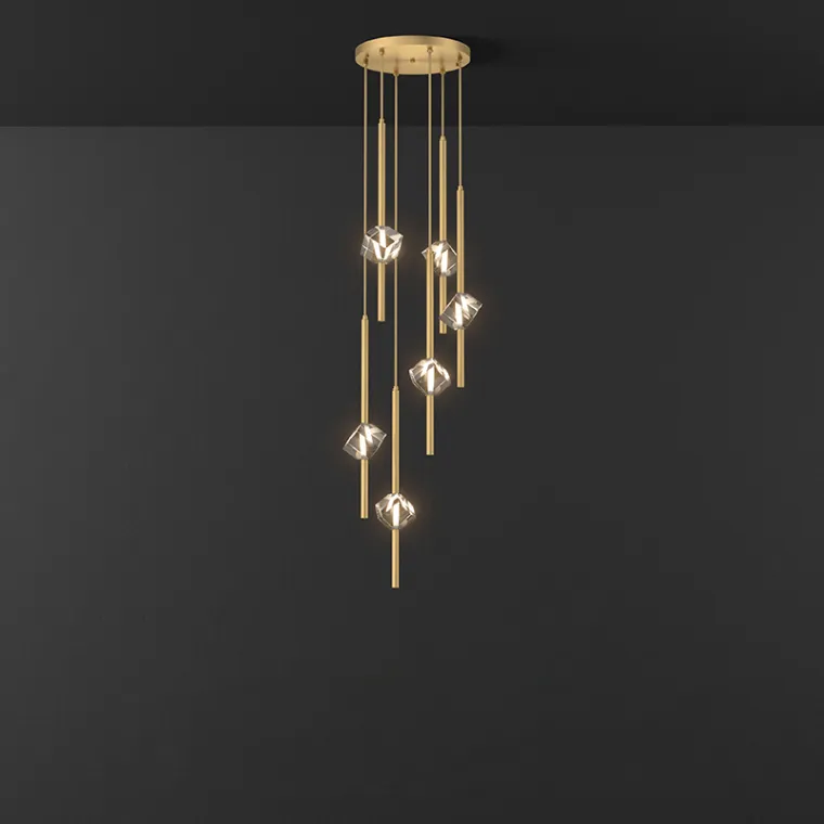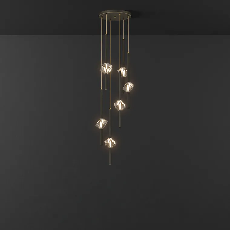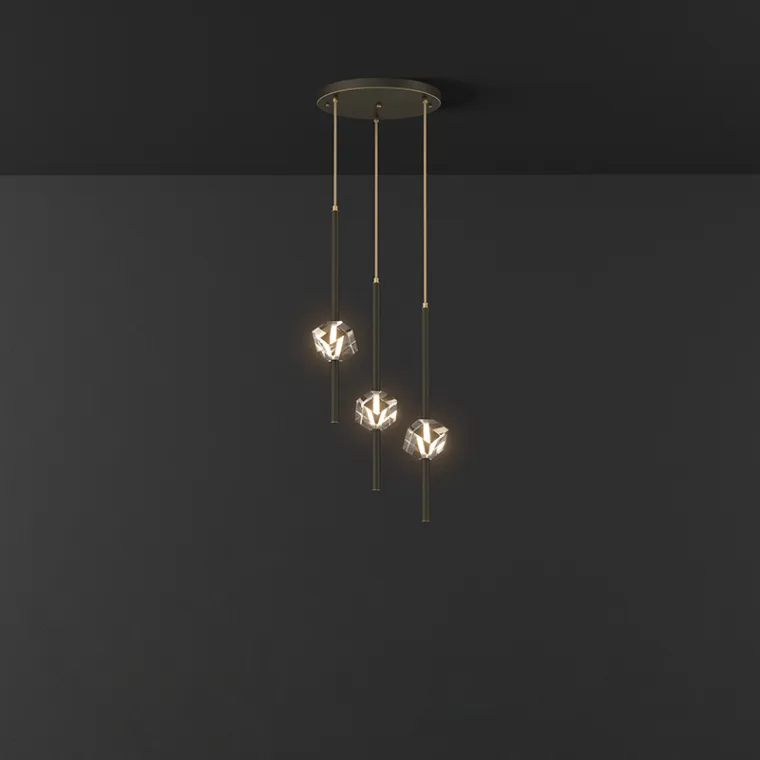 Готовая комбинация подвесных светодиодных светильников с хрустальными ромбовидными плафонами