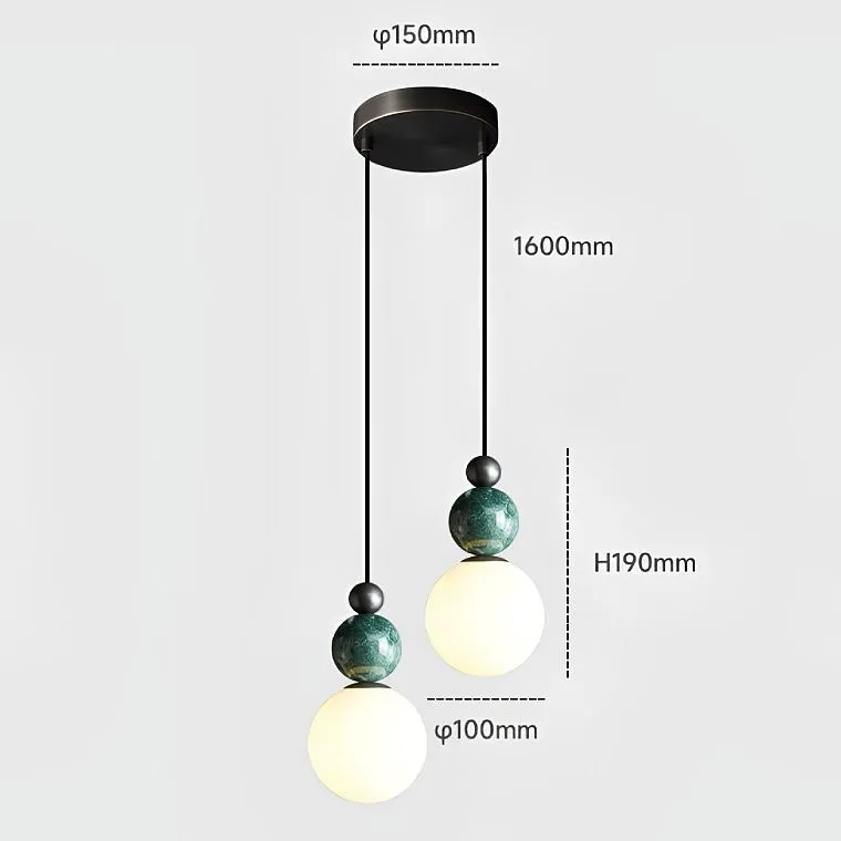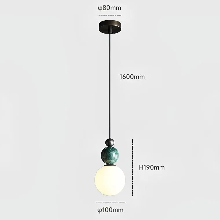 Классика и свежесть: Белый плафон-шар, словно лунный свет, нежно окутывает комнату, зеленый мраморный шар добавляет нотку природной гармонии. Завершает композицию акцент из черненой латуни, придающий светильнику утонченную винтажность.