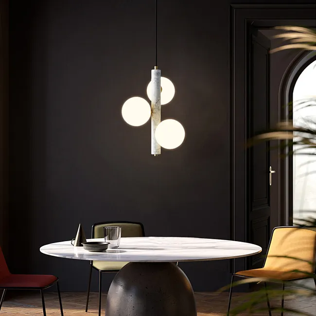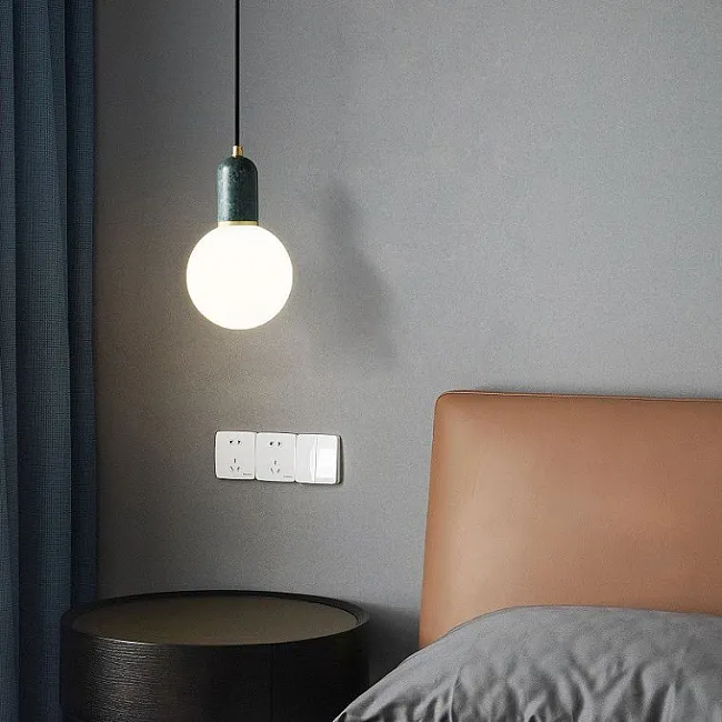 Классика и свежесть: Белый плафон-шар, словно лунный свет, нежно окутывает комнату, зеленый мраморный шар добавляет нотку природной гармонии. Завершает композицию акцент из черненой латуни, придающий светильнику утонченную винтажность.
