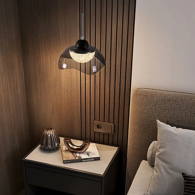 Дизайнерский подвесной светильник с рельефным плафоном из бетона конусообразной формы