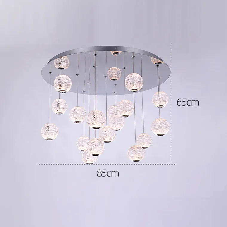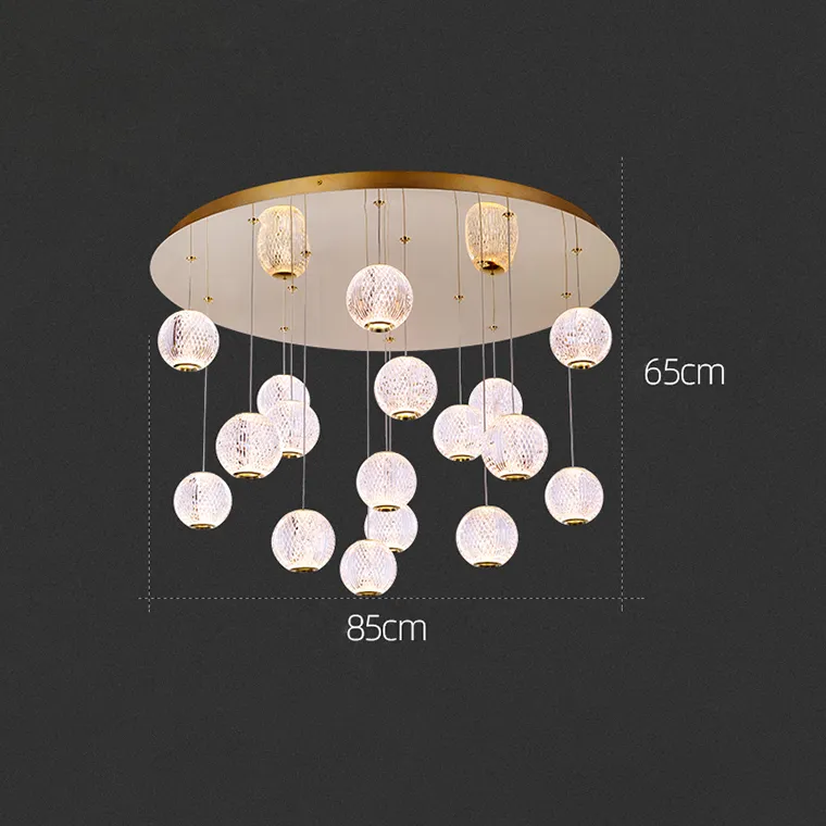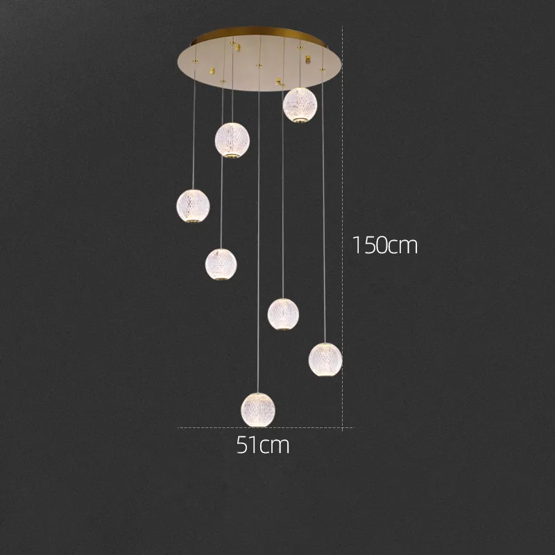 Готовая комбинация подвесных светильников с многогранными плафонами шарообразной формы