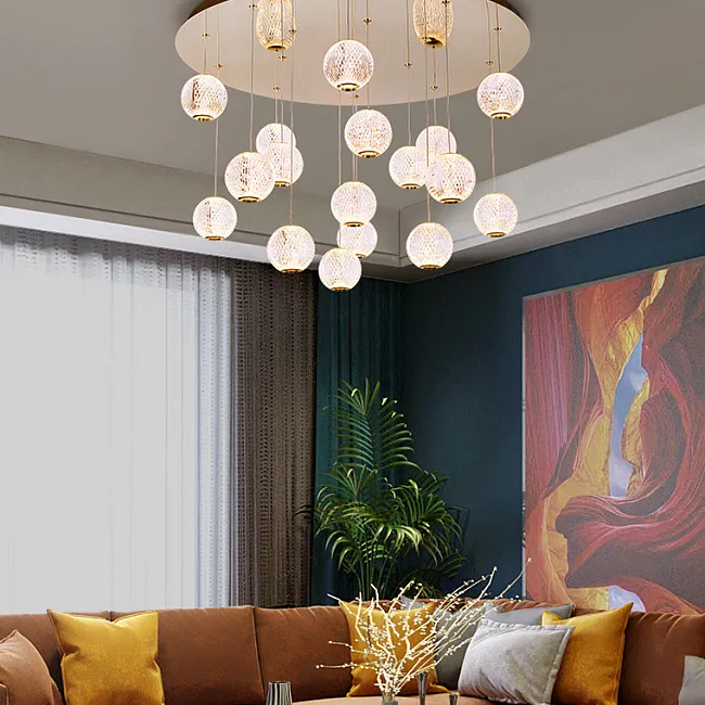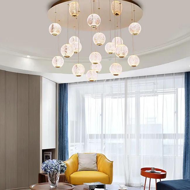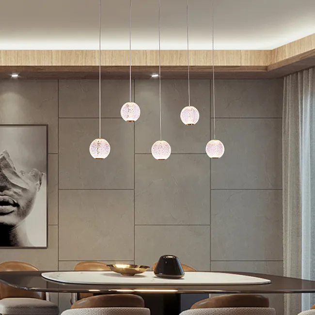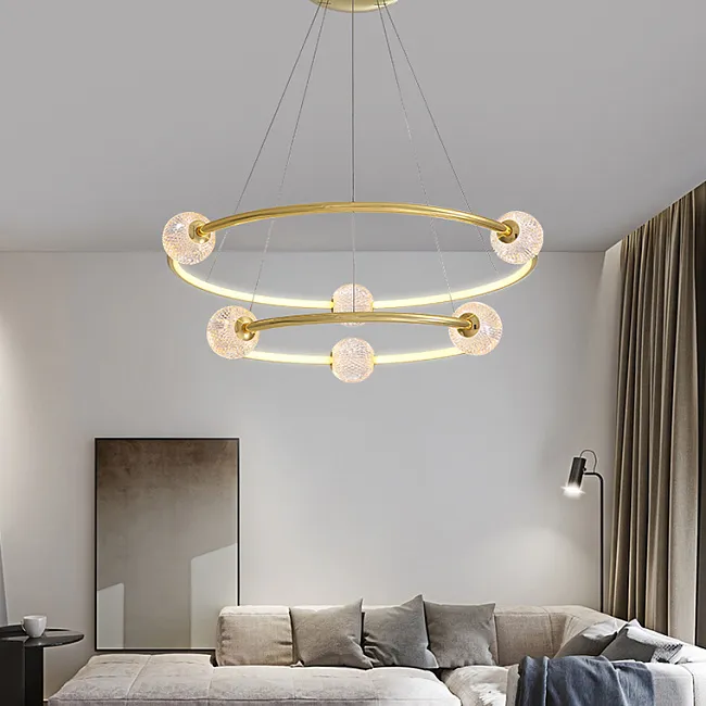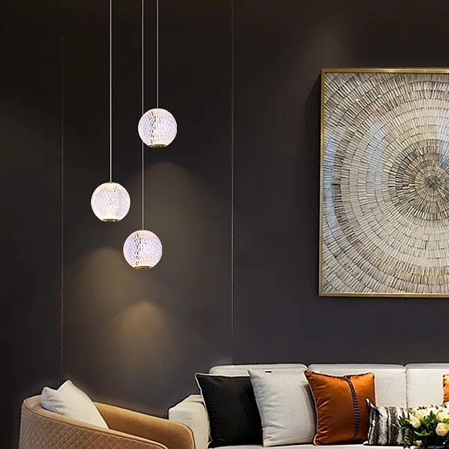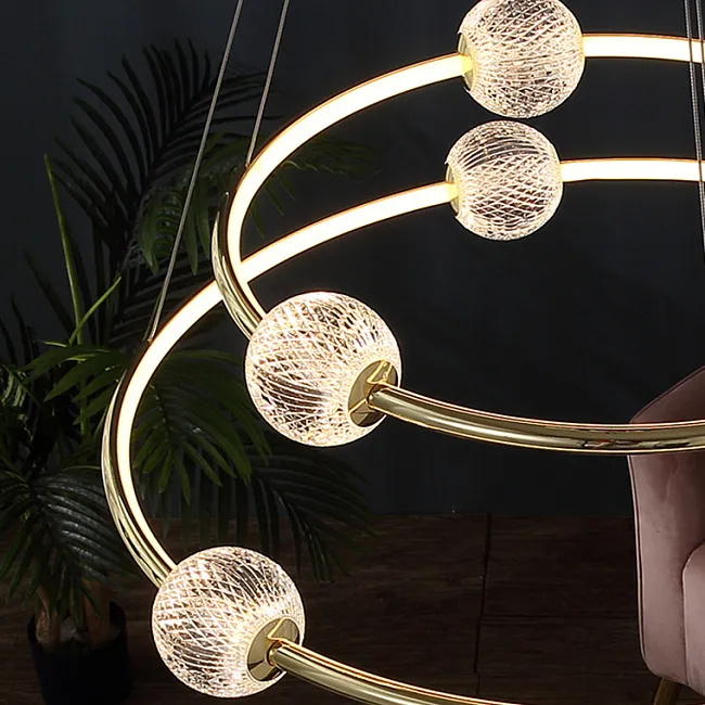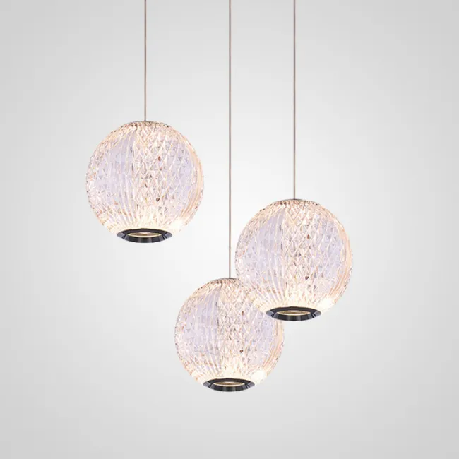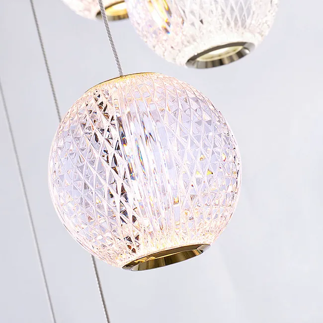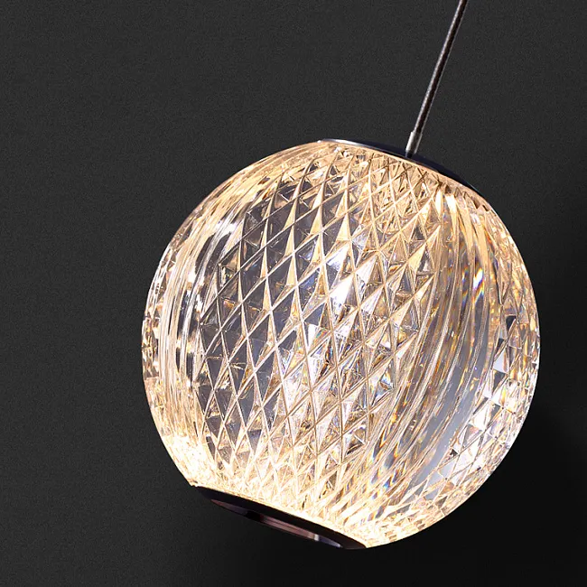 Подвесной светильник с шарообразным многогранным плафоном на металлическом кольце с внутренним LED-свечением