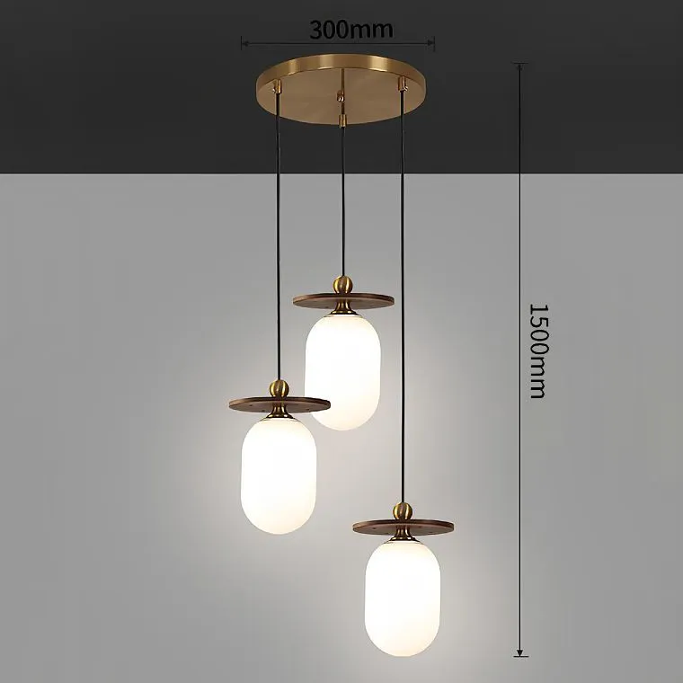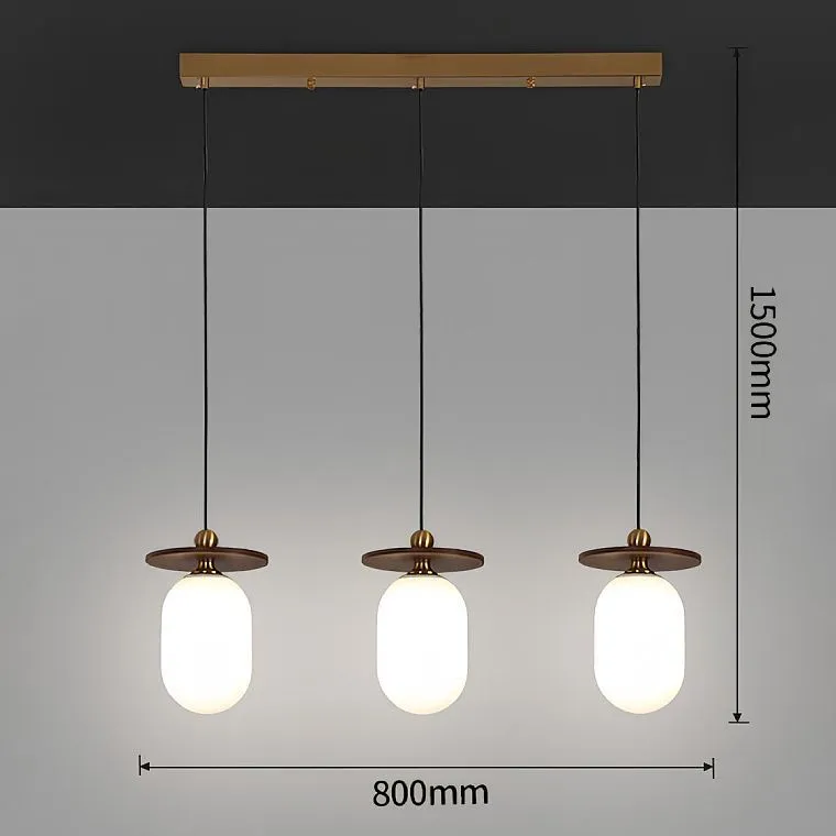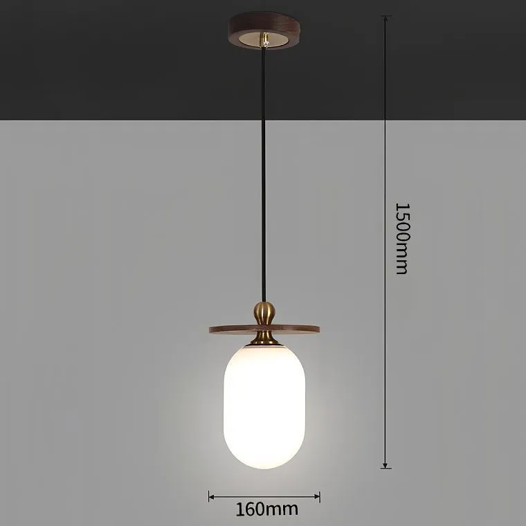 Серия светодиодных подвесных светильников с декоративным диском из темного дерева над овальным плафоном из молочного стекла