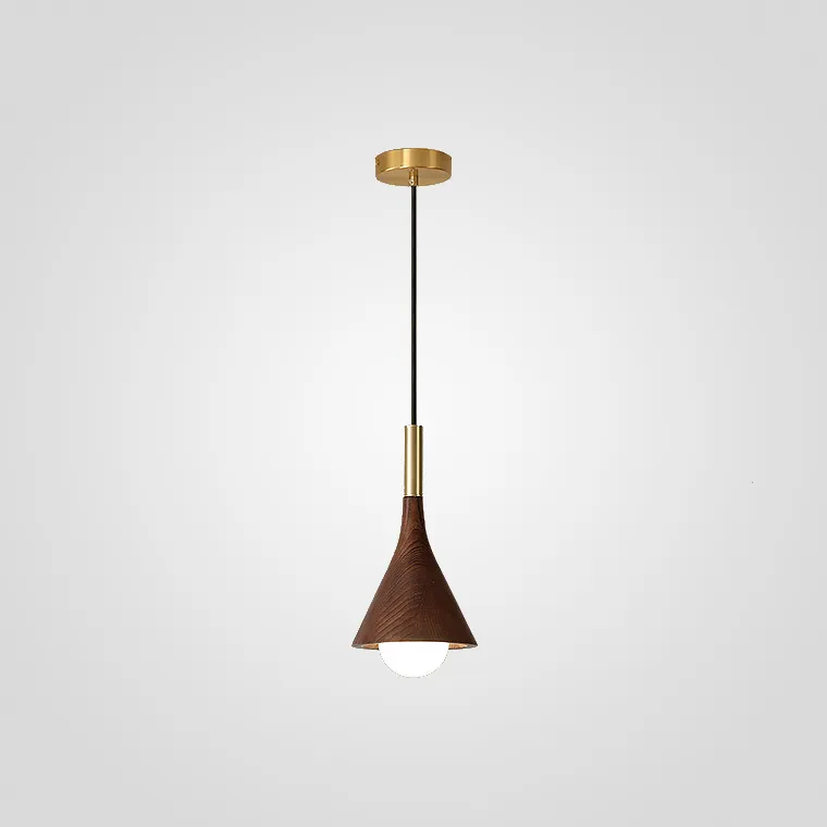 Серия подвесных светильников с деревянным корпусом конусообразной формы