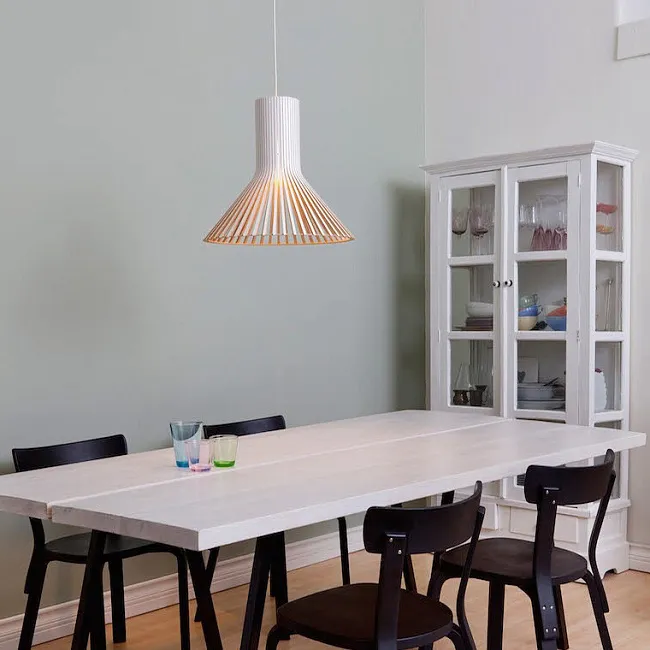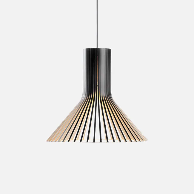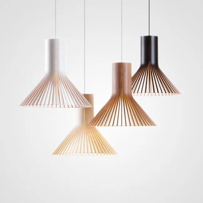 Серия подвесных светильников с деревянным корпусом конусообразной формы