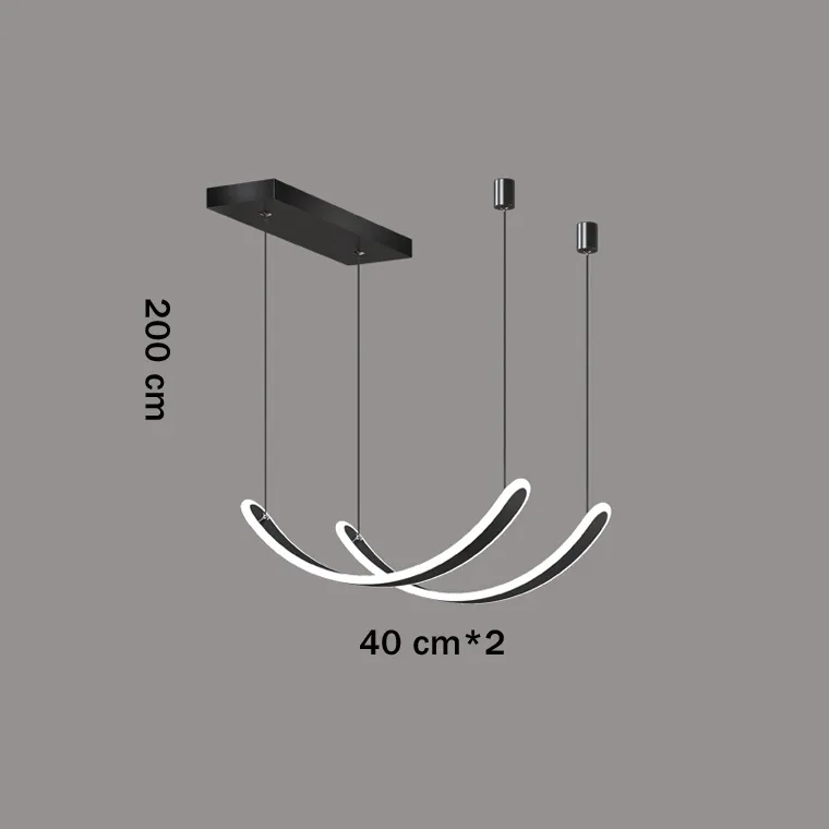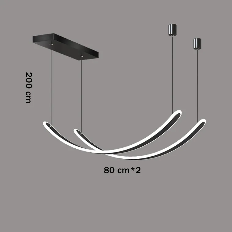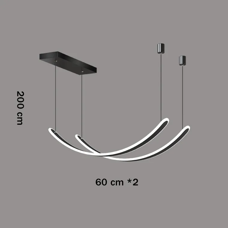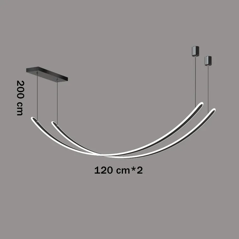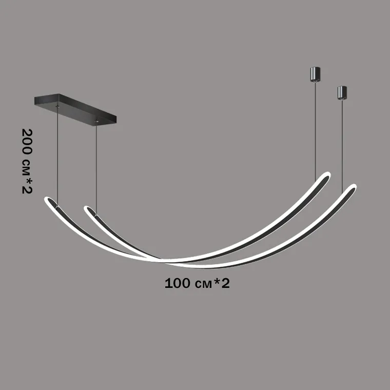 Готовая комбинация подвесных светодиодных светильников c вытянутыми изогнутыми плафонами со скругленными краями