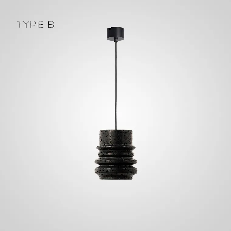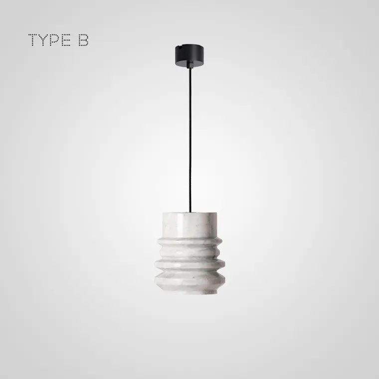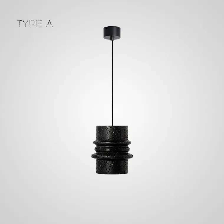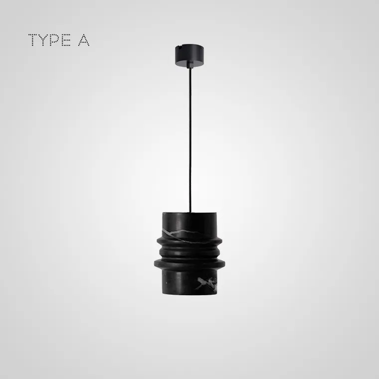 Серия подвесных светильников с рельефными плафонами цилиндрической формы из белого и черного камня