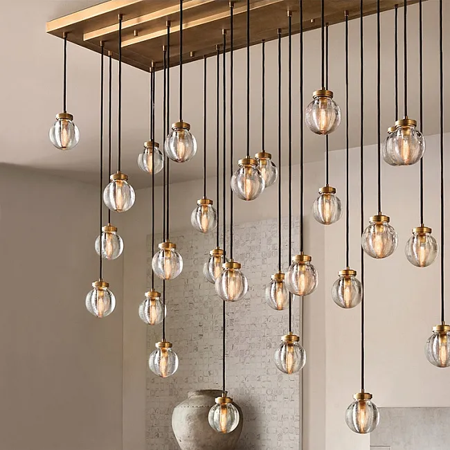 Погрузитесь в атмосферу волшебства и природной гармонии с нашим эксклюзивным рядом светодиодных инсталляций, которые не просто украшают ваше пространство, но и вдохновляют на создание собственной истории. Эти изящные подвесные элементы из прозрачного и зеленого стекла словно созданы самой природой — их неправильная, округлая форма напоминает о каплях дождя, застывших в воздухе, ожидая момента, чтобы заискриться под направленными лучами спотов.