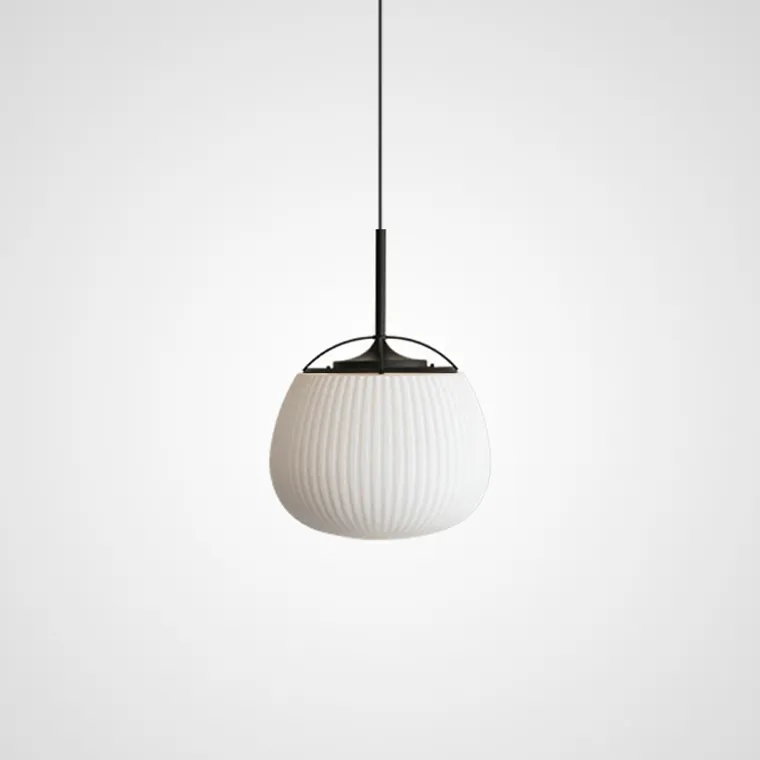 Серия подвесных светильников с шарообразным рельефным корпусом из нефритового стекла
