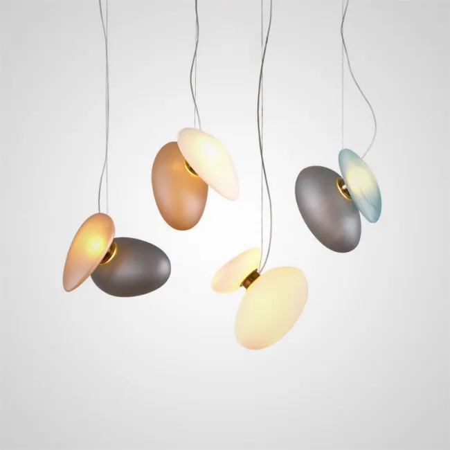 Серия подвесных светильников с шарообразным рельефным корпусом из нефритового стекла