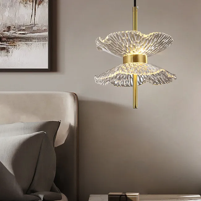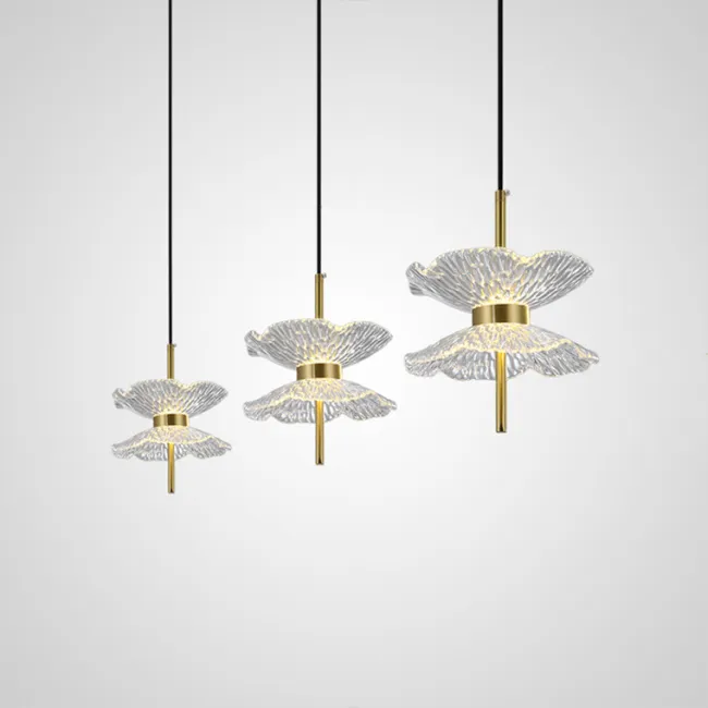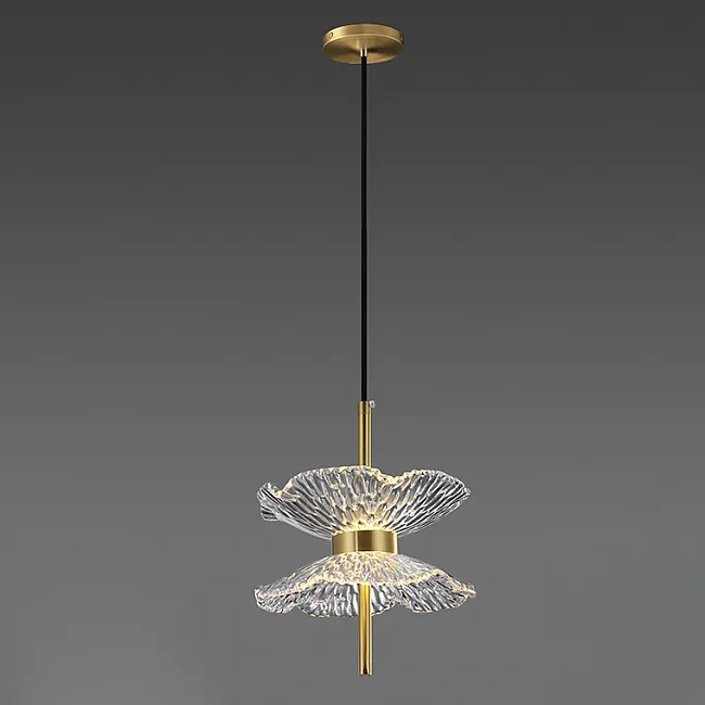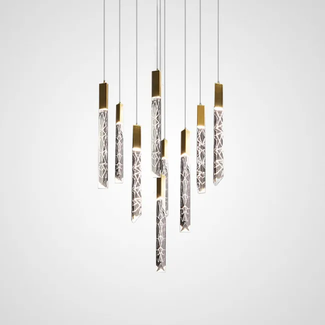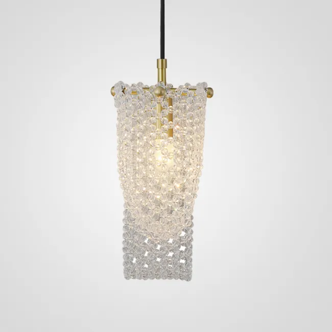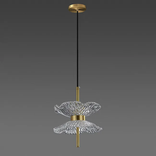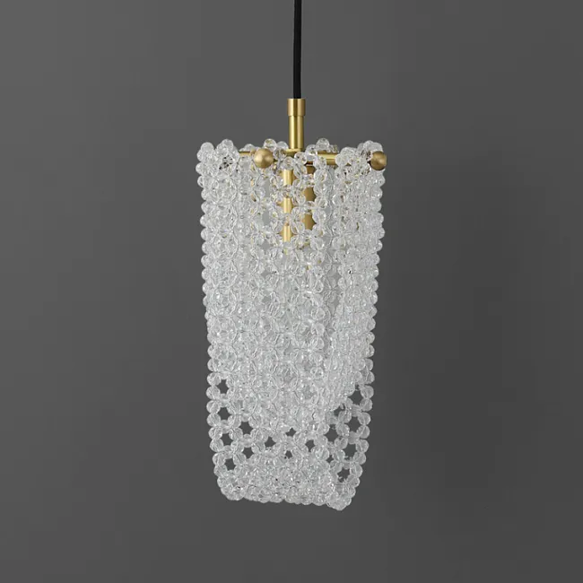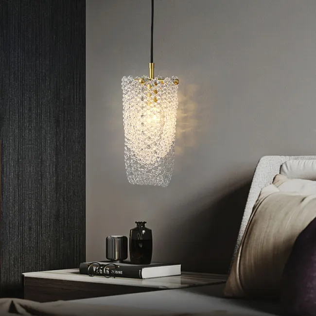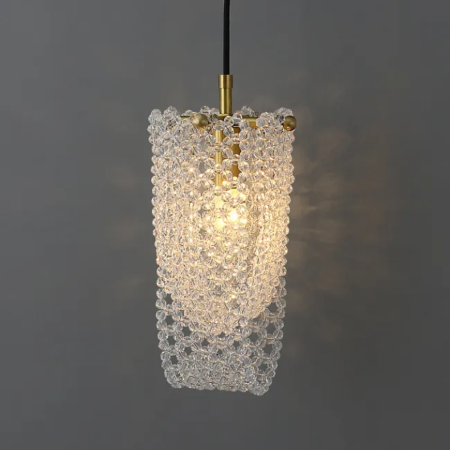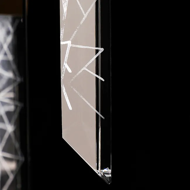 Серия подвесных светильников с геометрическими плафонами из рельефного стекла c деревянными элементами