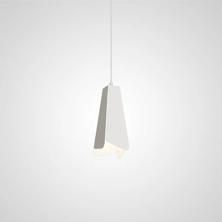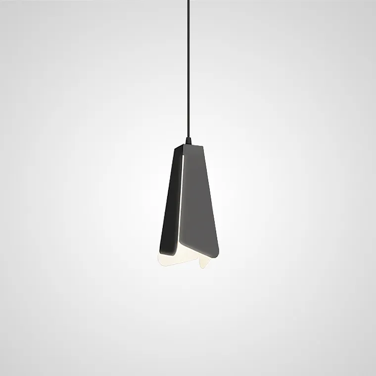 Серия подвесных светильников с трапециевидным абажуром из ассиметричных металлических пластин