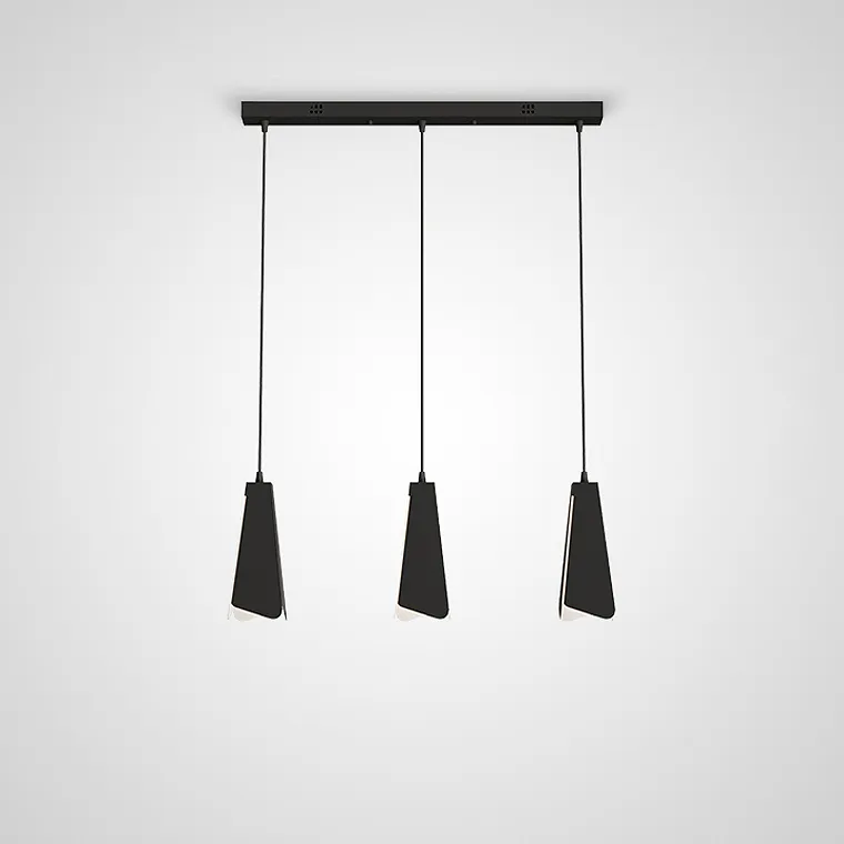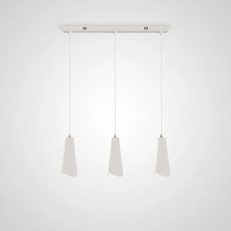 Готовая комбинация подвесных светильников c трапециевидным абажуром из ассиметричных пластин