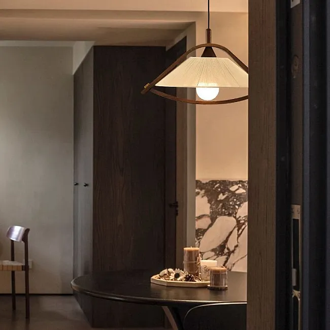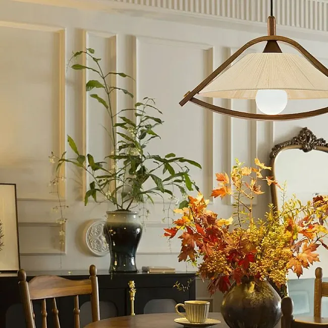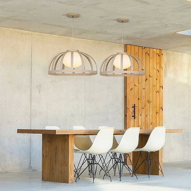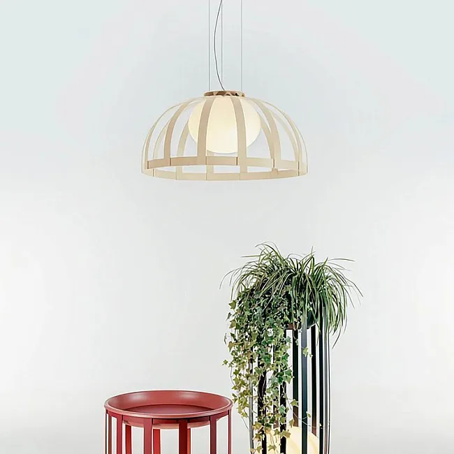 Представьте себе уютное кафе с кирпичными стенами, где теплый свет мягко струится через изогнутые деревянные планки. Или кухню-лофт, где каждая деталь говорит о характере и стиле. Этот подвесной светильник настоящая декоративная доминанта, придающая интерьеру винтажный шарм и средневековую атмосферу.