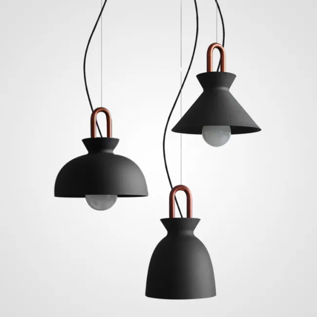 Серия подвесных светильников с прозрачными шарообразными плафонами в разновидных стеклянных абажурах