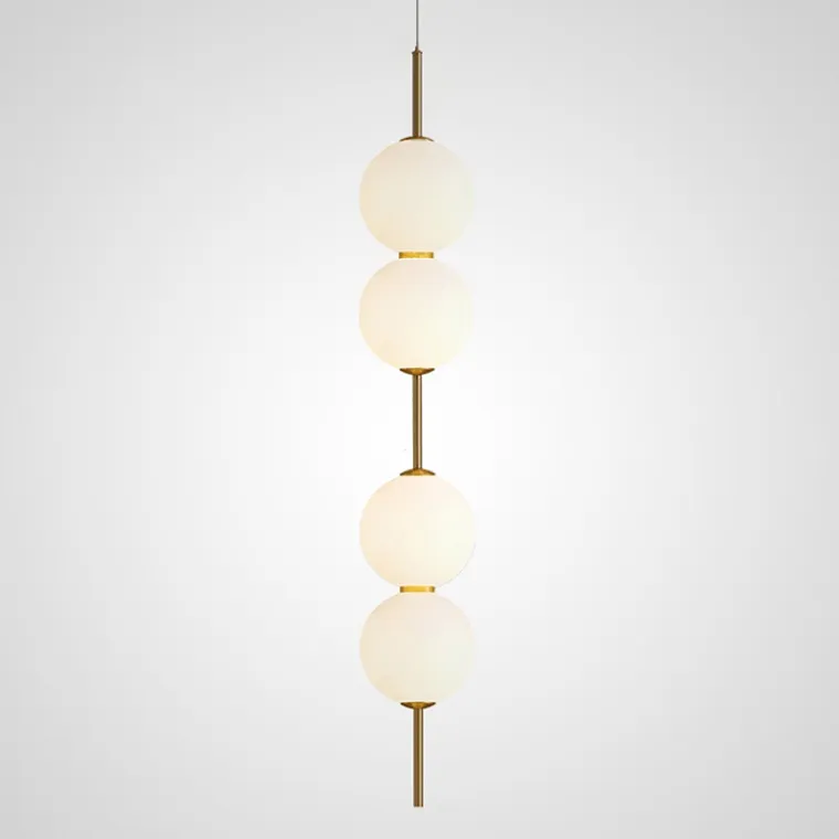 Серия подвесных светодиодных светильников со стеклянными шарообразными плафонами, собранными на латунной стойке