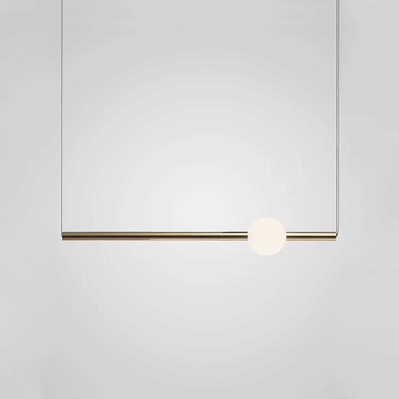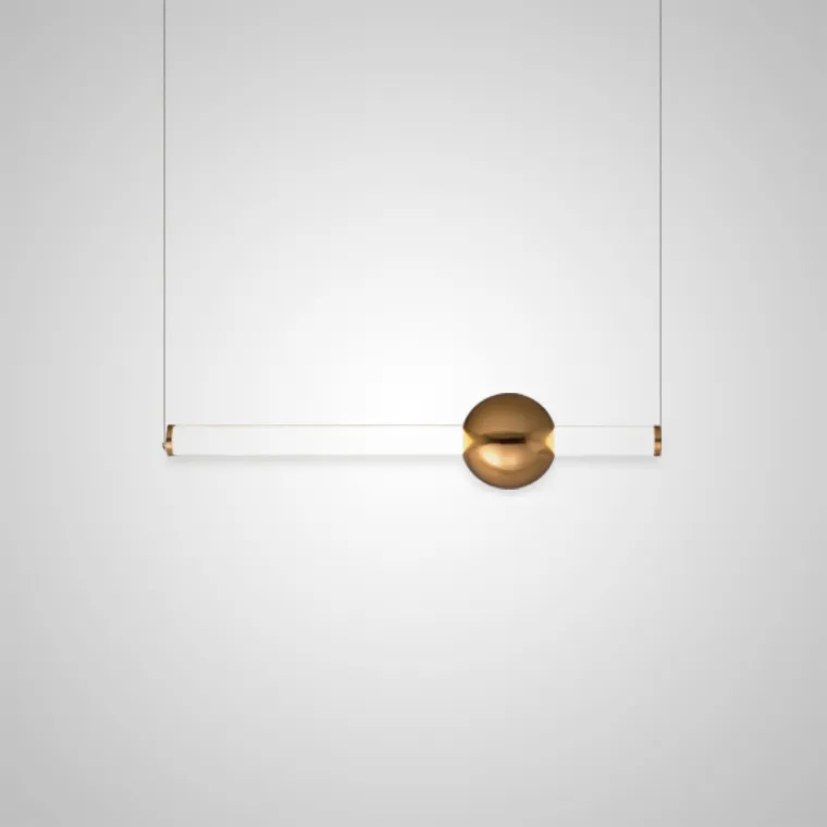 Материал светильника - металл, а тип цоколя - LED, что обеспечивает яркость и экономичность освещения. Модель представлена горизонтальными и вертикальными подвесами разной длины - от 60 до 90 см. Это позволяет создавать различные композиции из светильников и воплощать любые дизайнерские идеи.