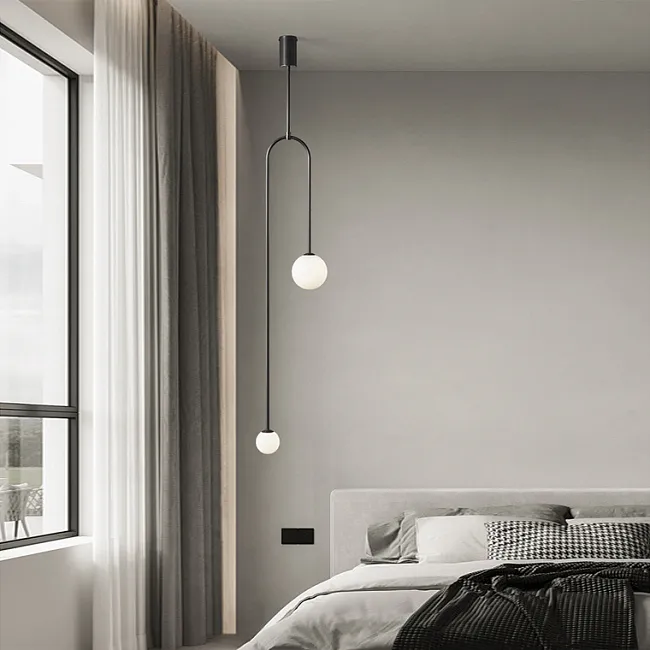 Серия подвесных светильников в виде комбинации деревянного абажура цилиндрической формы и шарообразного плафона
