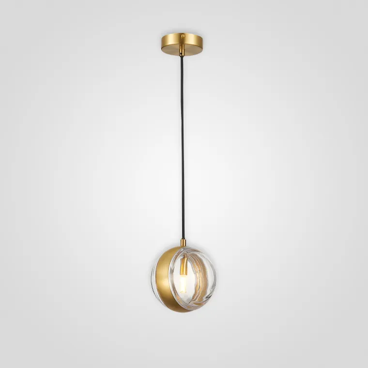 Минималистичный подвесной светильник в виде шара с латунной окантовкой