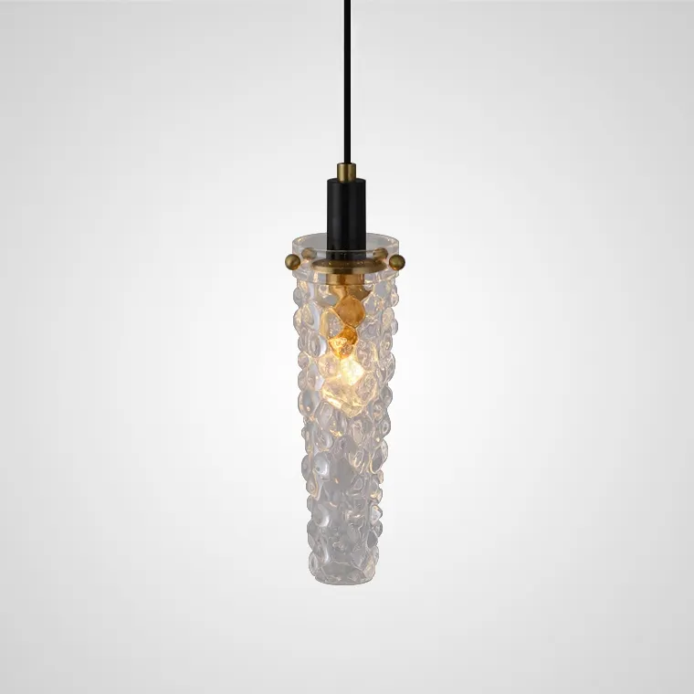 Дизайнерский подвесной светильник с коническим рельефным плафоном из выдувного стекла