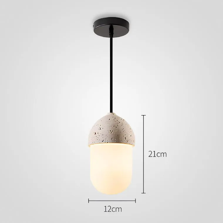 Я сразу запала на эти милые подвесные светильнички. Прочитала описание тут на сайте и действительно поняла, что это как жёлуди. Их шляпки каменные, сделаны из настоящего травертина. Он очень классный и внешне, и наощупь. Плафоны стеклянные матовые, свет приглушают и делают очень комфортным, мягким. Я выбрала самую пузатенькую, круглую модель.