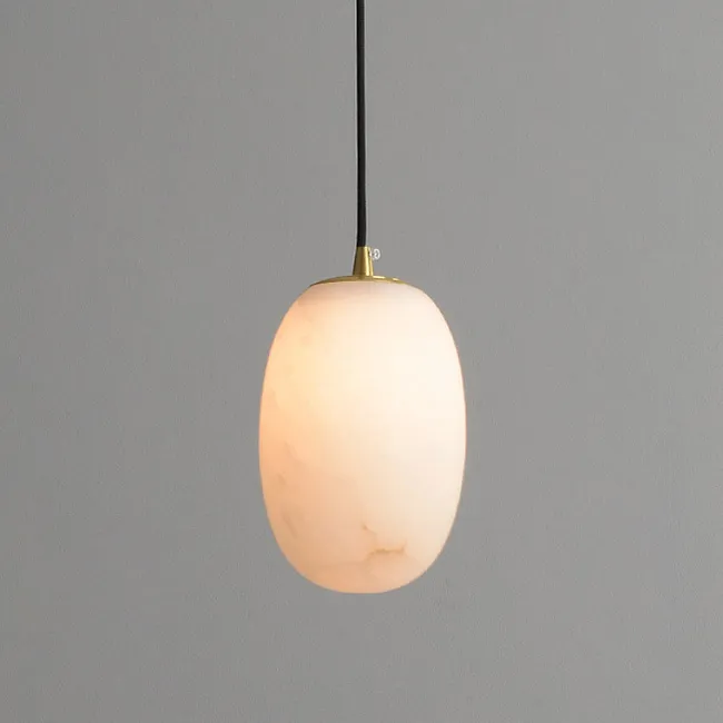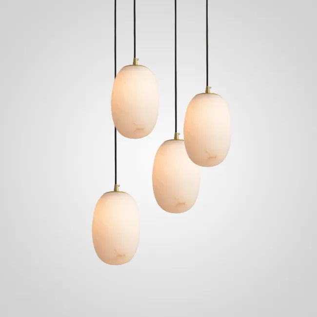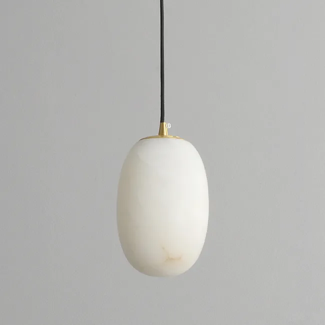 Я сразу запала на эти милые подвесные светильнички. Прочитала описание тут на сайте и действительно поняла, что это как жёлуди. Их шляпки каменные, сделаны из настоящего травертина. Он очень классный и внешне, и наощупь. Плафоны стеклянные матовые, свет приглушают и делают очень комфортным, мягким. Я выбрала самую пузатенькую, круглую модель.