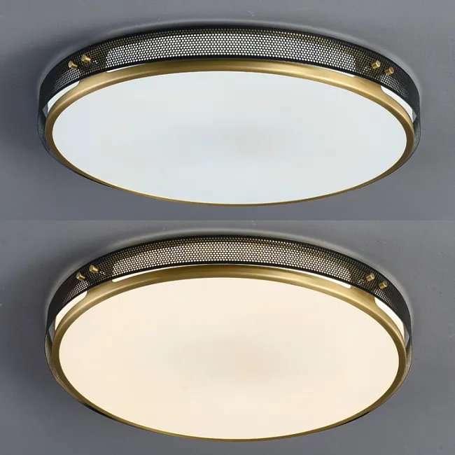 Серия потолочных светодиодных светильников с круглой LED-панелью в металлическом корпусе с отделкой под серый камень