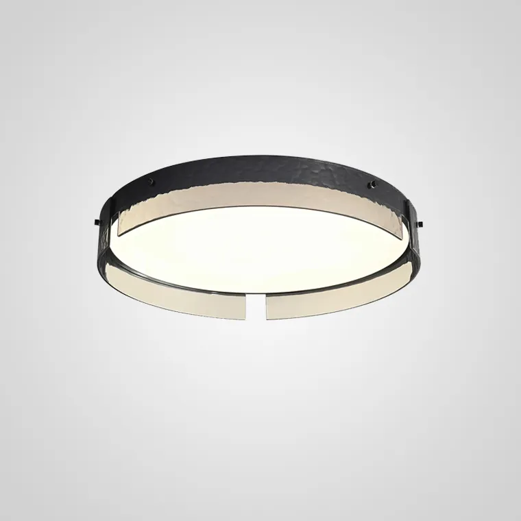 Серия потолочных светильников на круглом каркасе с прямоугольными рассеивателями из стекла с эффектом льда