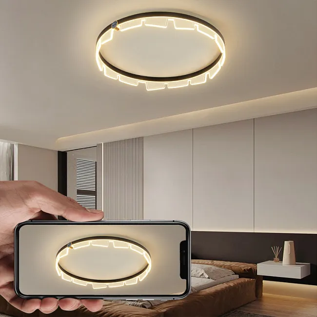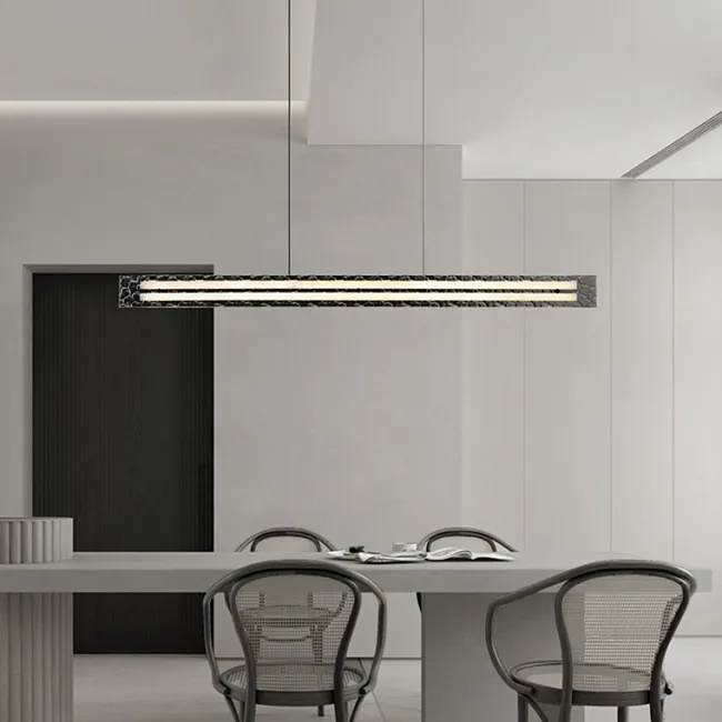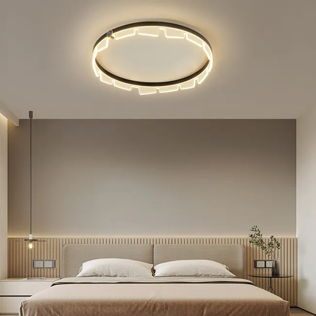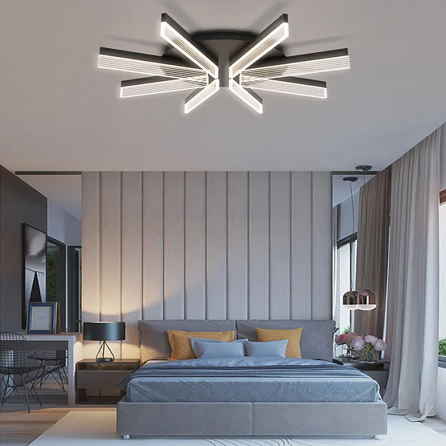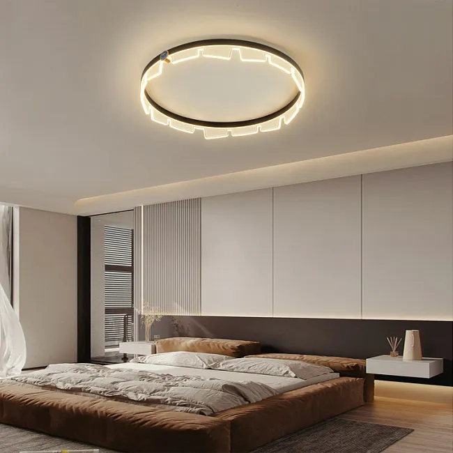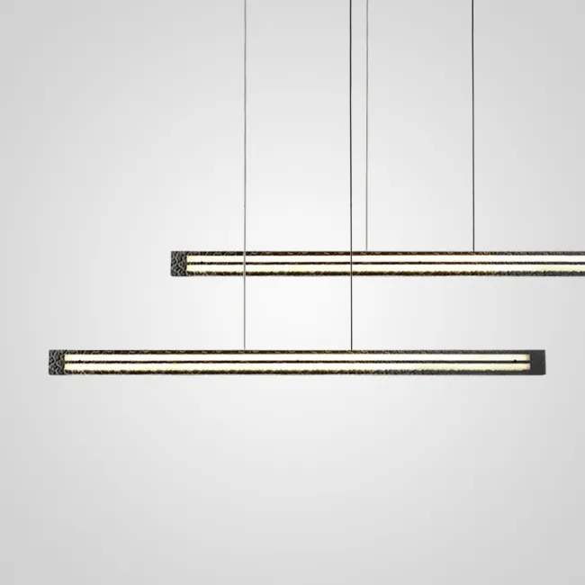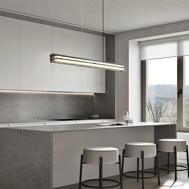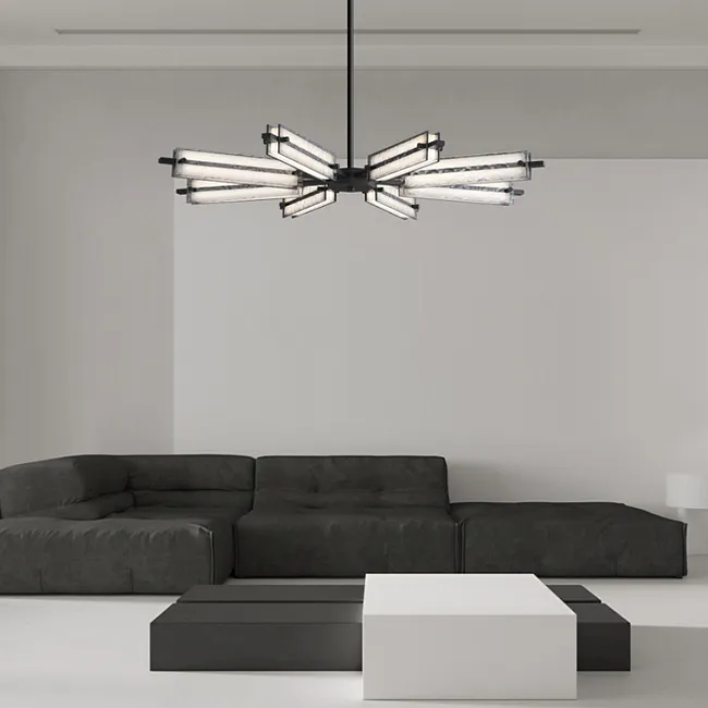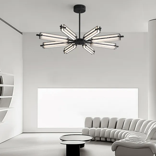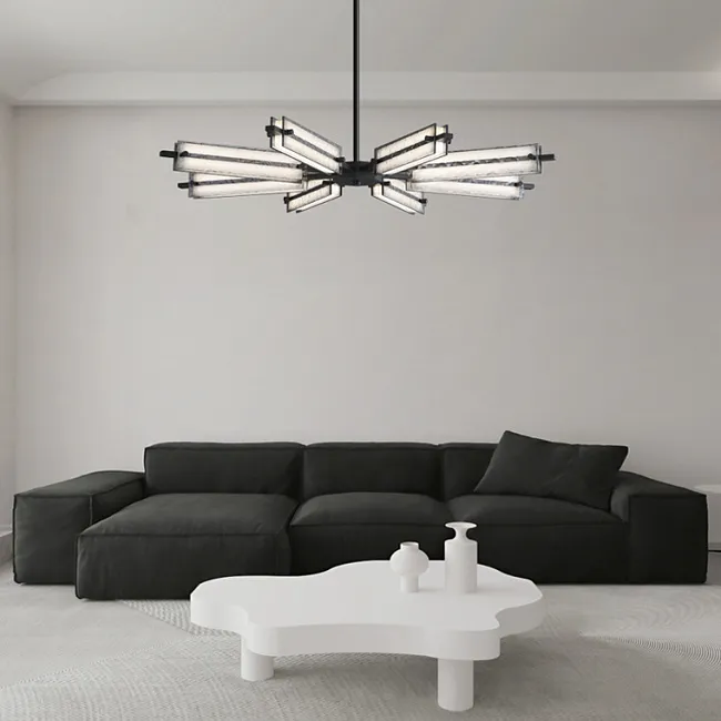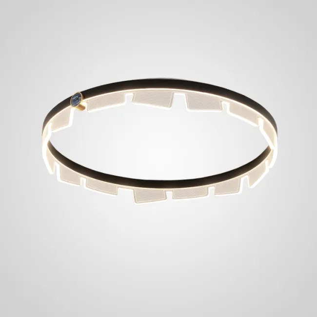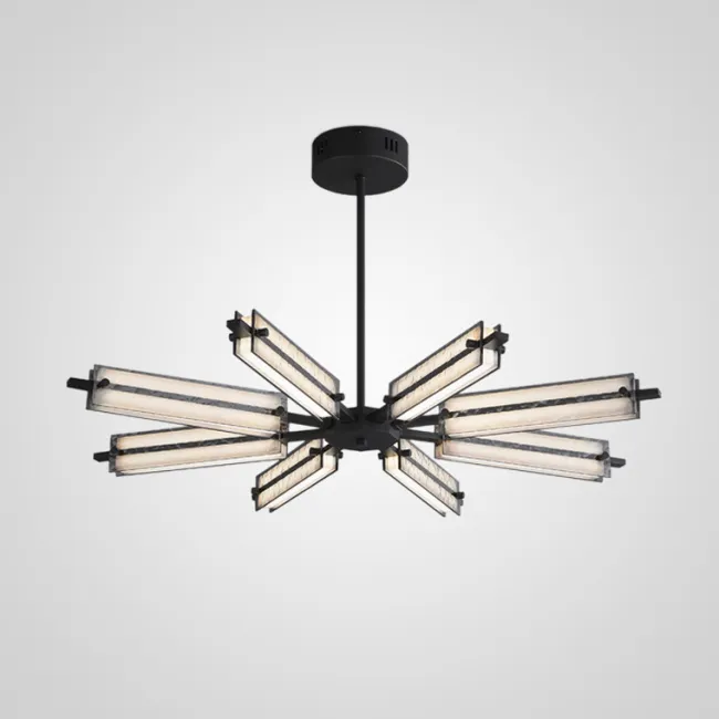 Серия потолочных светильников на круглом каркасе с прямоугольными рассеивателями из стекла с эффектом льда