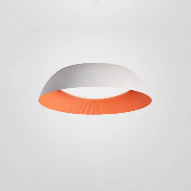 Серия потолочных светодиодных светильников с белой и ярко-оранжевой внутренней отделкой под абажуром в форме чаши