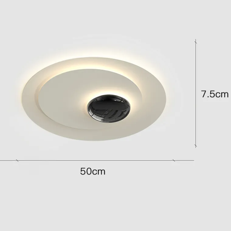 Потолочный светодиодный светильник с многослойным абажуром из белых дисковидных пластин разного диаметра и декоративным элементом черного цвета