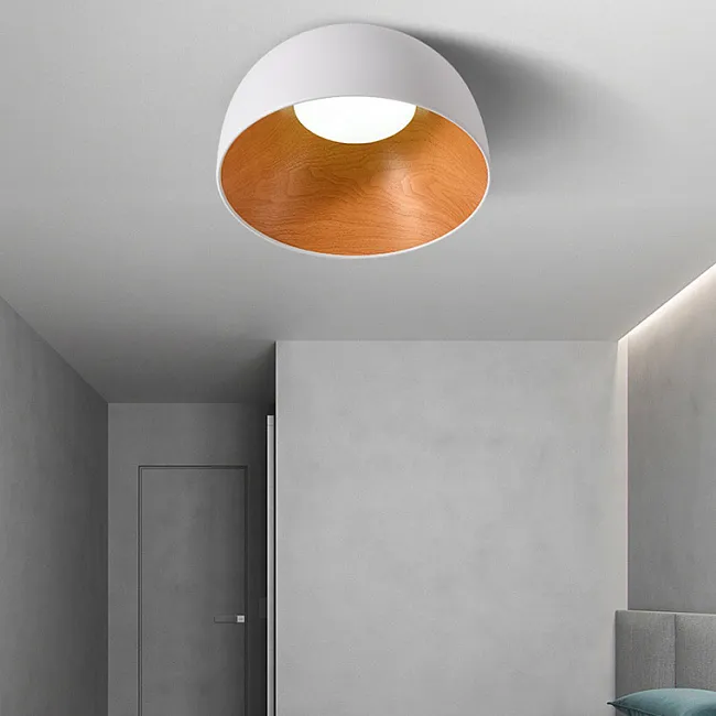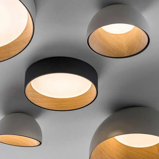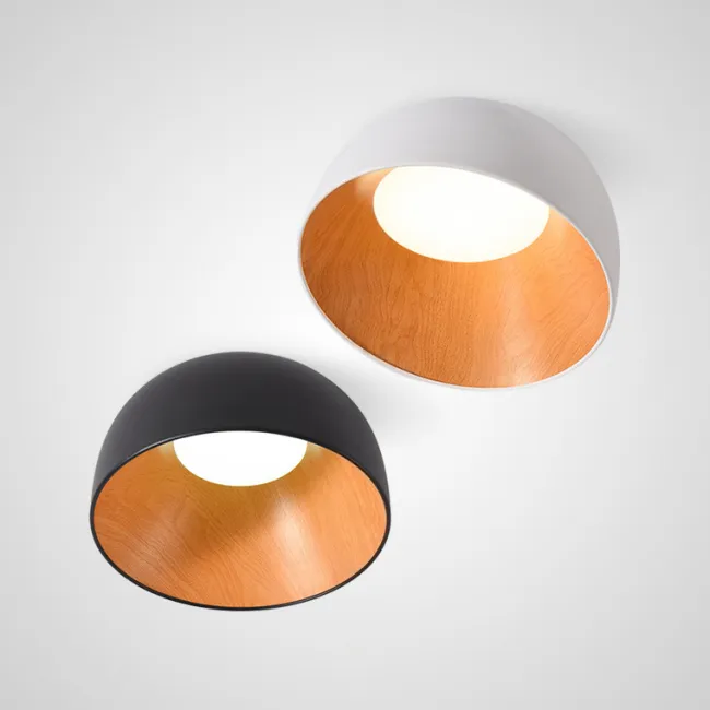 Потолочные светильники с асимметричными купольными плафонами с внутренней отделкой под дерево