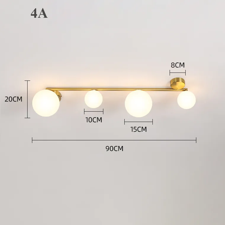 Потолочный светильник с его белыми плафонами-шарами на золотой металлической рейке станет отличным выбором для локального освещения зон готовки или барных стоек. В комнатах-студиях он поможет визуально разделить пространство, а в гостиной выделить рабочую зону.