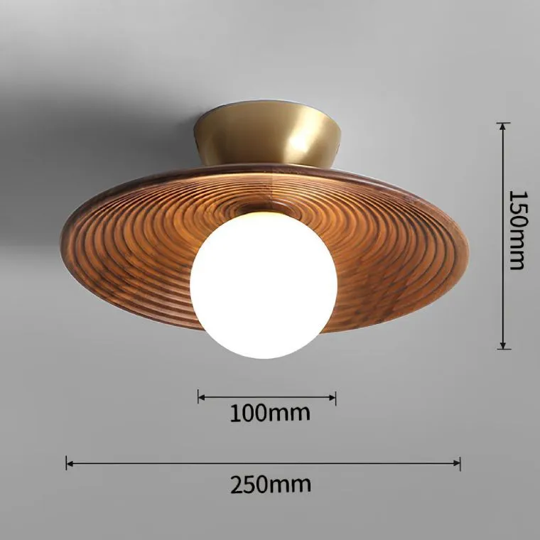 Потолочный светильник из дерева с латуннным элементом в эко стиле