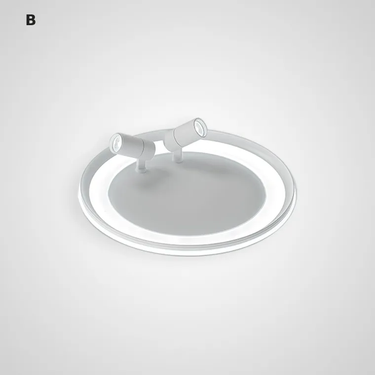 Серия потолочных светильников со светодиодным кольцом и двумя вращающимися плафонами цилиндрической формы