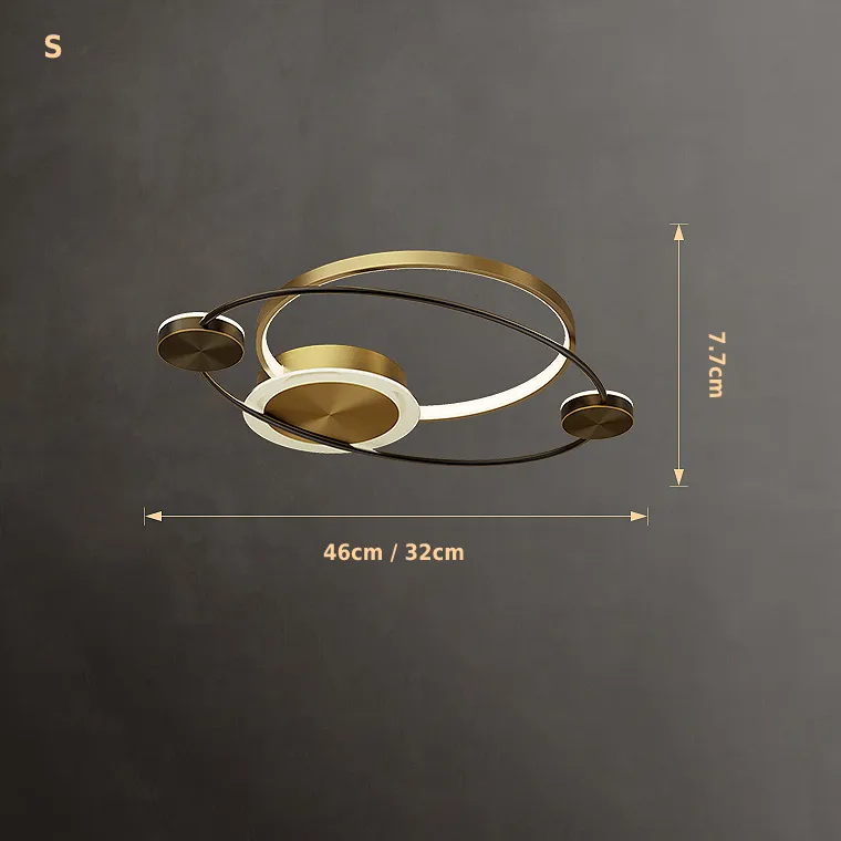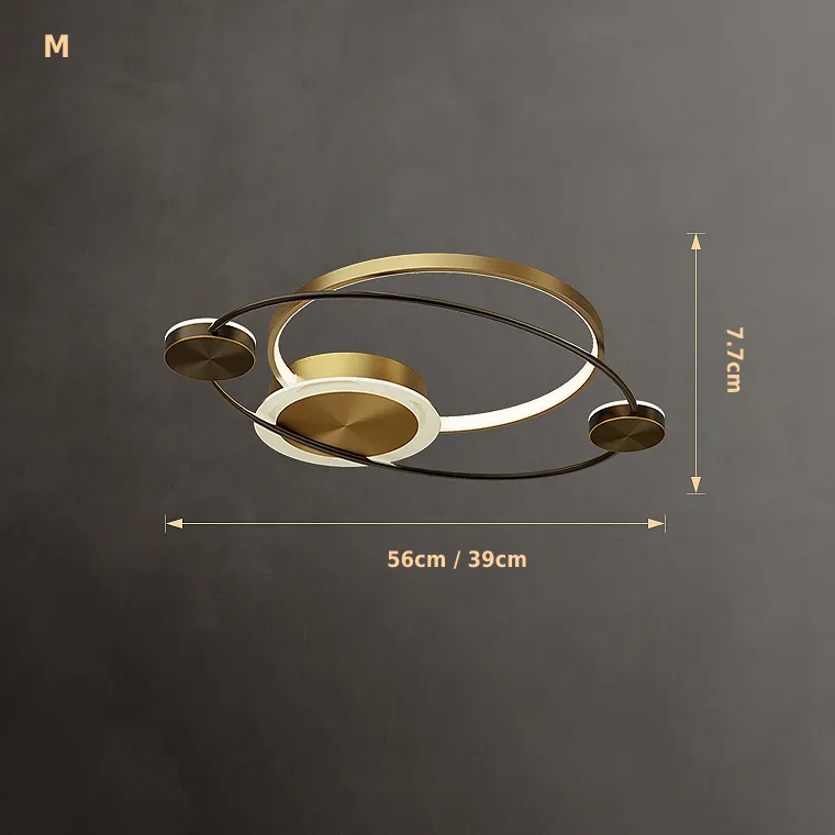Потолочный светодиодный светильник в виде комбинации эллипса и кольца из натуральной и чернёной латуни