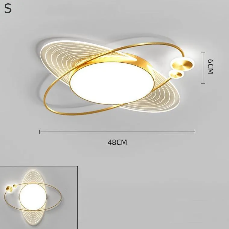 В центре находится круглая световая панель, излучающая мягкий, но яркий свет. Вокруг нее плавно движется металлический эллипс, словно символизирующий орбиты планет. Прозрачная пластина с изящной лазерной гравировкой добавляет изображению глубины и объема, превращая его в настоящее произведение искусства.