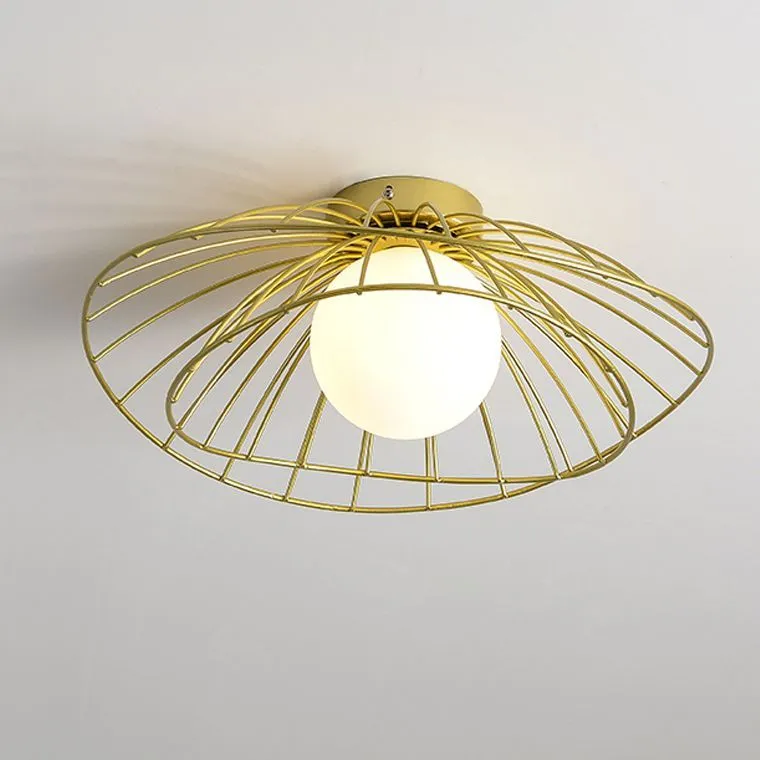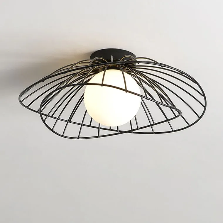 Этот потолочный светильник с шарообразным плафоном и двойным сетчатым абажуром станет ярким акцентом в вашем интерьере, сочетая минимализм и элегантность стиля лофт.