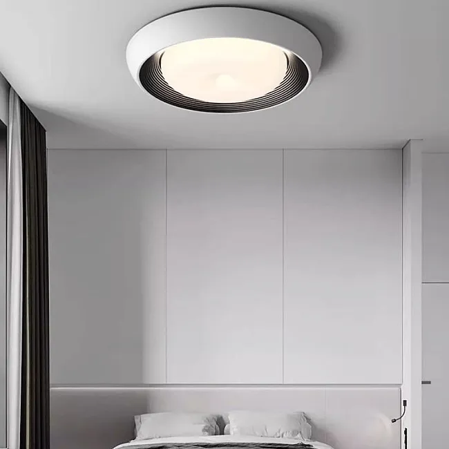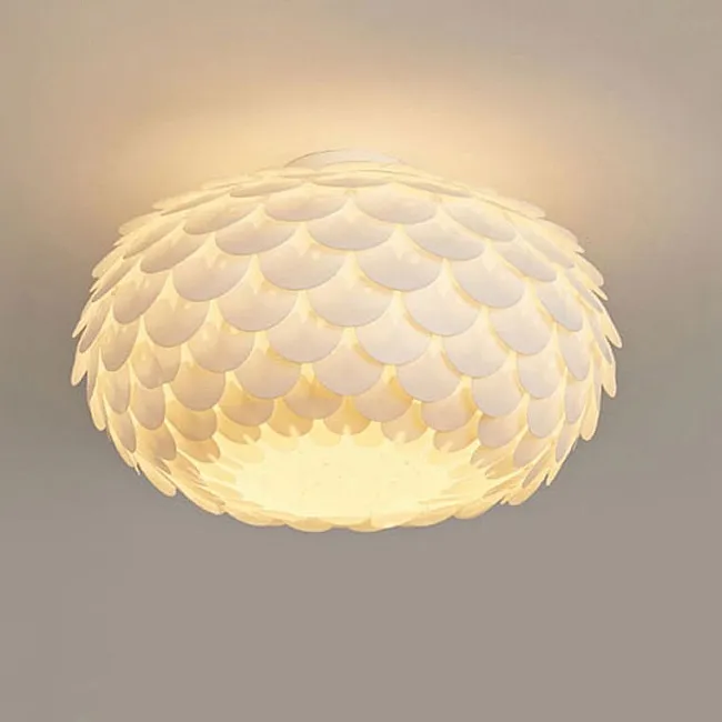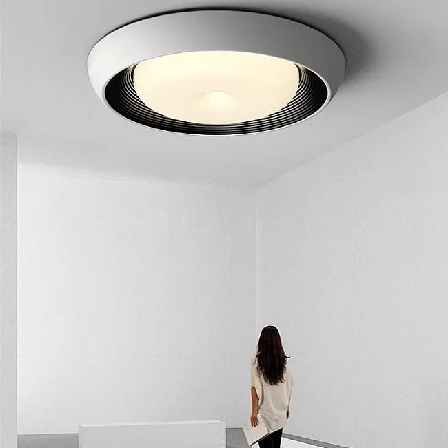 Потолочный светильник с прозрачным рассеивателем в форме усеченного цилиндра с гравировкой и LED-подсветкой по контуру дисковидного корпуса