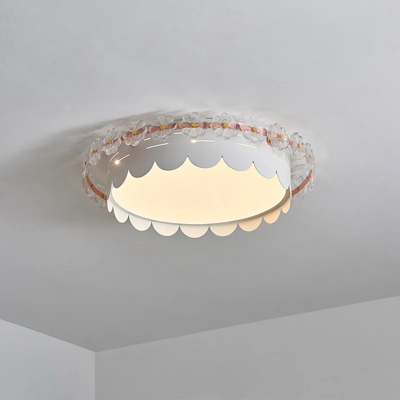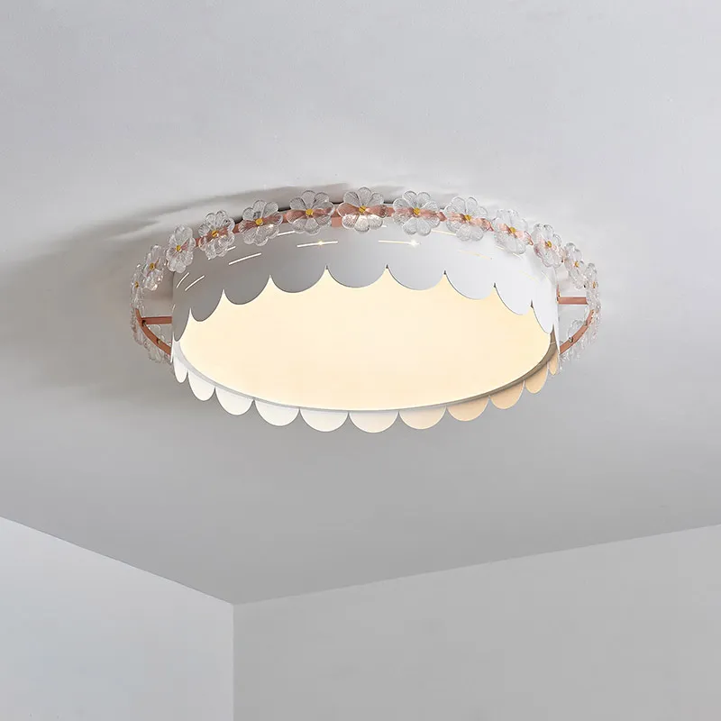 Потолочный светодиодный светильник круглой формы с декоративными прозрачными цветами по контуру корпуса