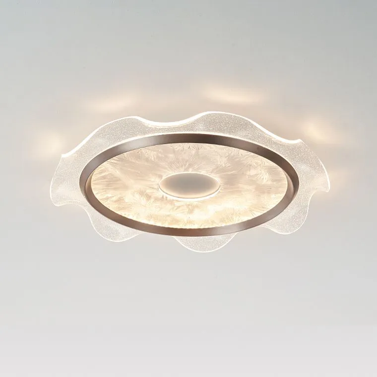 Эти уникальные светильники, разработанные специально для помещений с низкими потолками, воплощают в себе гармонию природы и современных технологий. Каждый светильник выполнен в форме экзотического цветка, распускающего свои лепестки и ярко сияющего в вашем интерьере. Сердцевина светильника украшена утонченным морозным узором, словно покрытым инеем, который добавляет нотку загадочности и зимней свежести. Вдохновленный природной красотой, волнообразный фигурный рассеиватель словно обнимает свет, создавая теплое и мягкое освещение, идеально подходящее для создания романтической и уютной атмосферы.