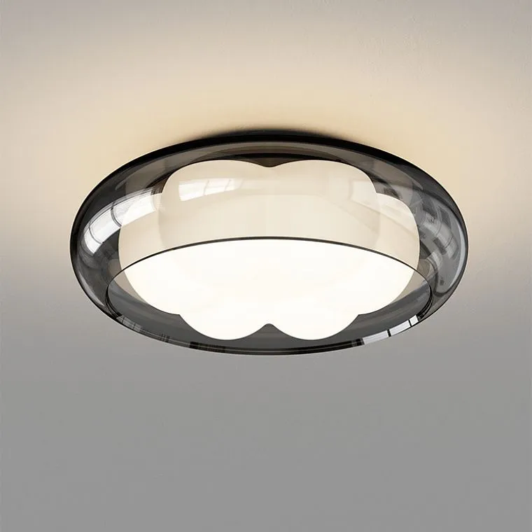 Матовый белый рассеиватель, в форме цветка спрятан внутри открытого плафона, выполненного из дымчатого стекла. Это контрастное сочетание нежности белых лепестков и загадочной дымки создаёт уникальную атмосферу, подобную свету лунного света, проникающего сквозь густую листву. Выпуклые округлые рассеиватели напоминают цветы хлопка, добавляя нежности и природной гармонии в каждый уголок вашего дома.