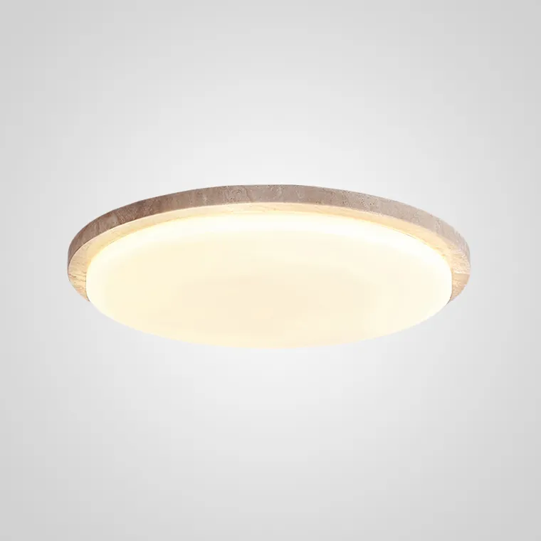 Серия потолочных светодиодных светильников с дисковидным корпусом из натурального травертина